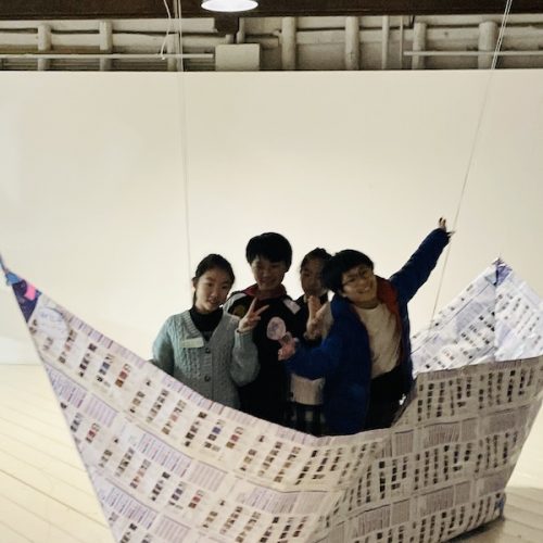 芸術村に眠るこれまでのイベントチラシを用いて、巨大な折り紙を作ります!