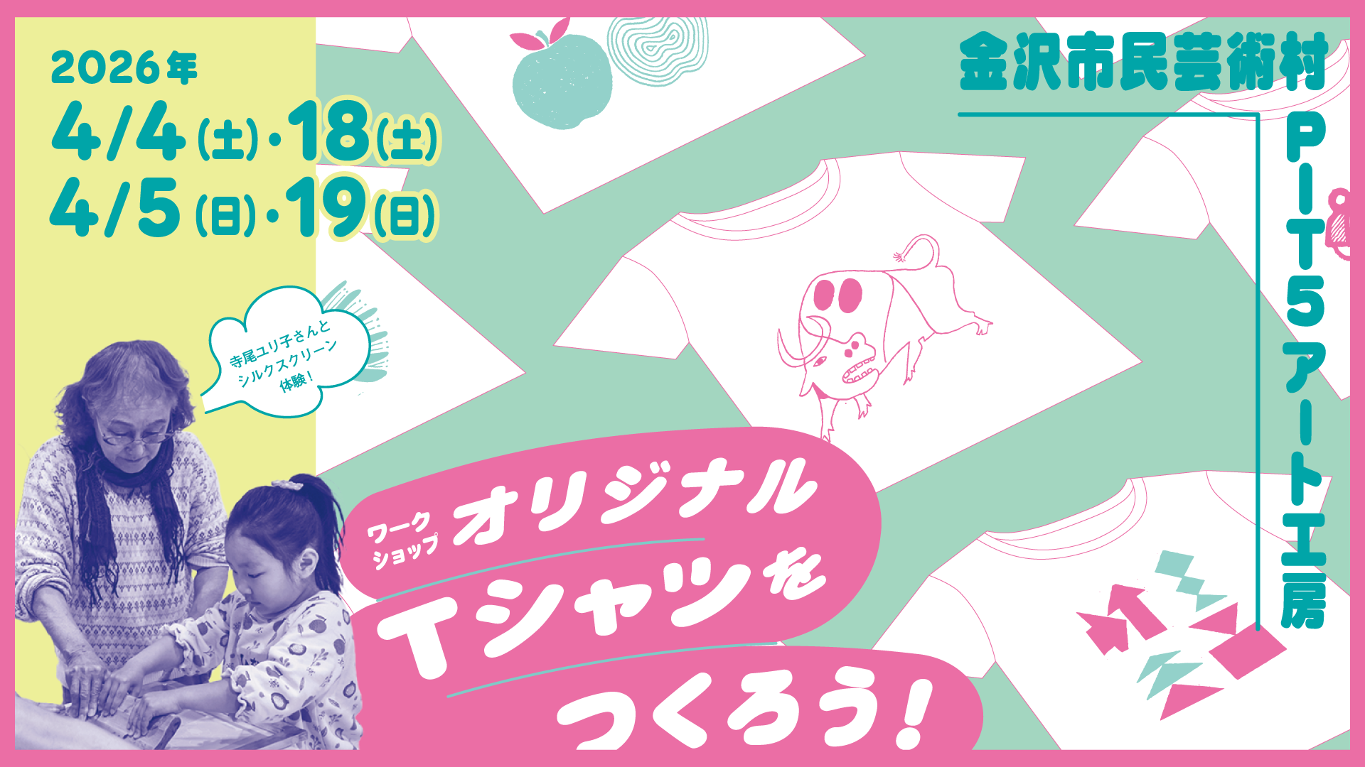 手書きイラストでオリジナルデザインのTシャツをつくる人気のシルクスクリーンワークショップです。